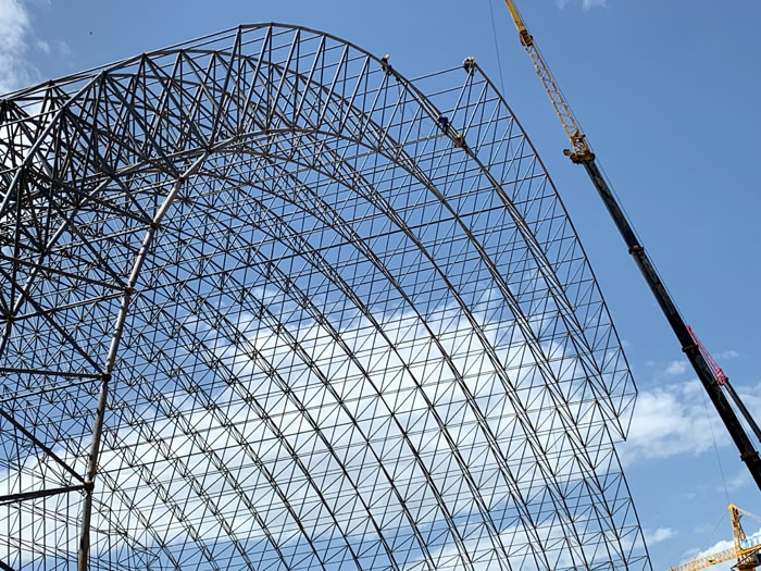 (2)网架加工前应对现场尺寸进行复测,确认无误后方可进行加工、安装;网架制作、运输、安装应遵守《空间网格结构技术规程》JGJ7-2010、《钢网架大同螺栓球节点》JG/T 10-2009、《钢网架大同螺栓球节点用高强度螺栓》 GB/T 16939-2016、《大同钢结构大同工程大同施工规范》 GB50755-2012、《大同钢结构大同工程大同施工质量验收标准》 GB50205-2020。